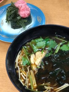 海ぶどう軍艦やもずく酢、タコライス軍艦など、東京の回転寿司にはないネタが色々あって楽しかったです。