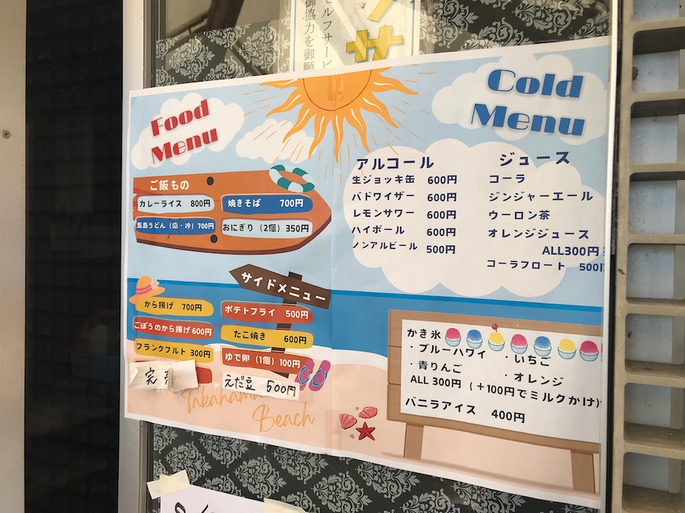 ビーチ用のパラソルレンタルはなかったけど、屋根付きの座敷席が十分にあったから特に必要なかったね。夏休みの平日なら満席にはならなそう。